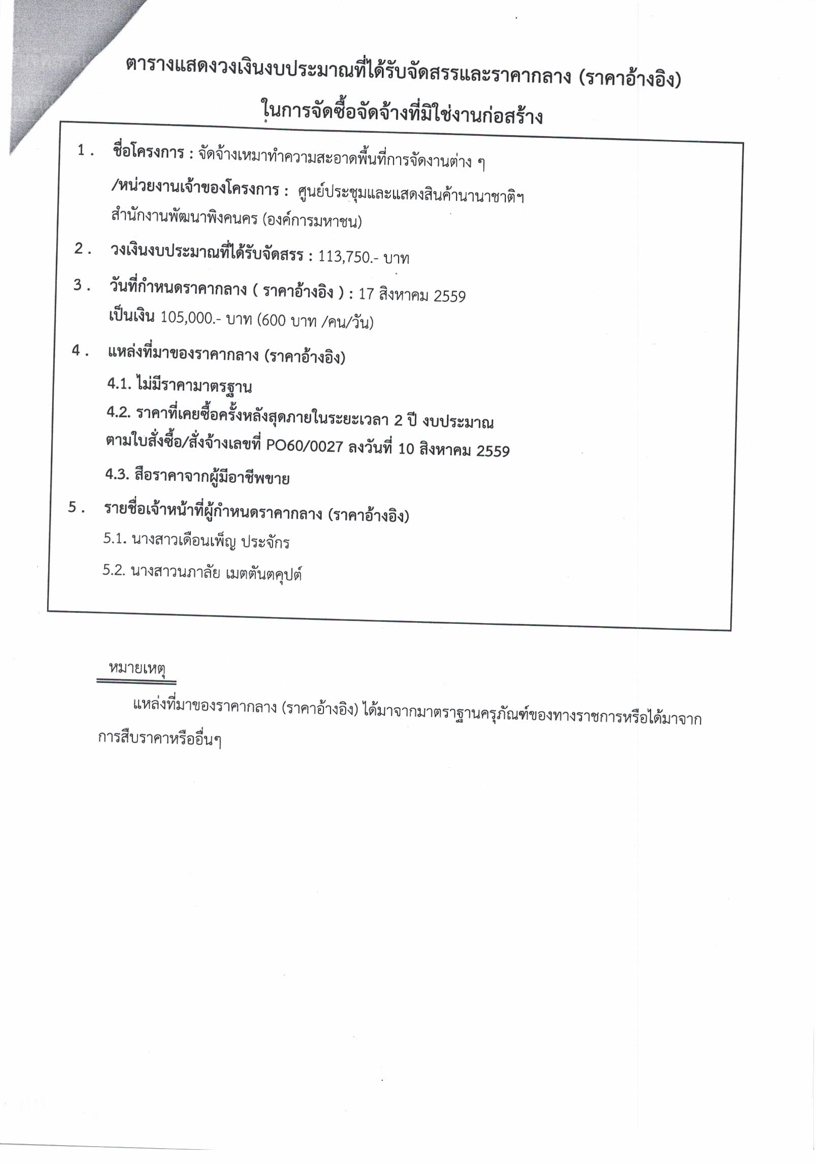 (ภาษาไทย) จัดจ้างเหมาทำความสะอาดพื้นที่การจัดงานต่างๆ