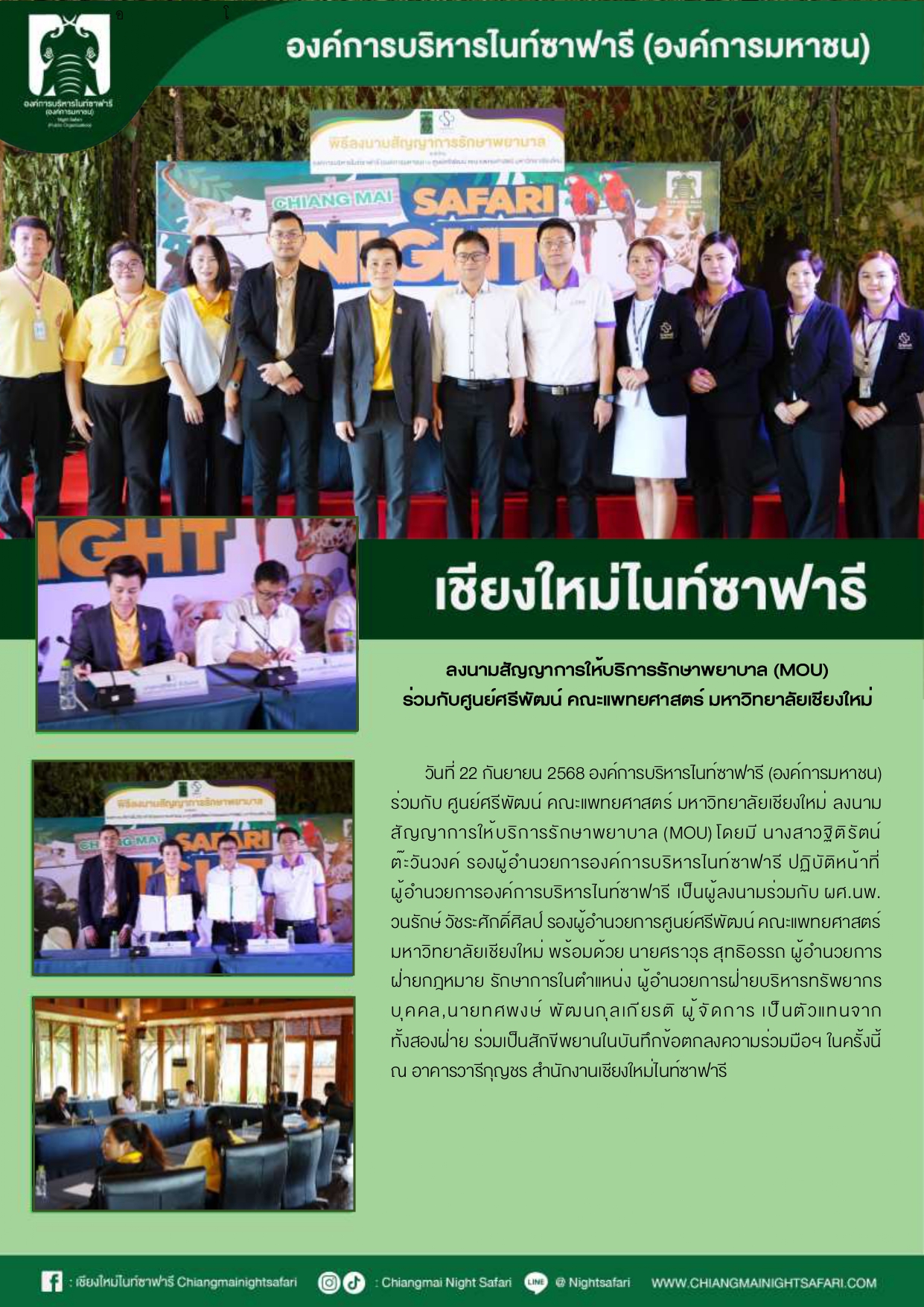 เชียงใหม่ไนท์ซาฟารี ลงนามสัญญาการให้บริการรักษาพยาบาล (MOU) ร่วมกับศูนย์ศรีพัฒน์ คณะแพทย์สตร์ มหาวิทยาลัยเชียงใหม่