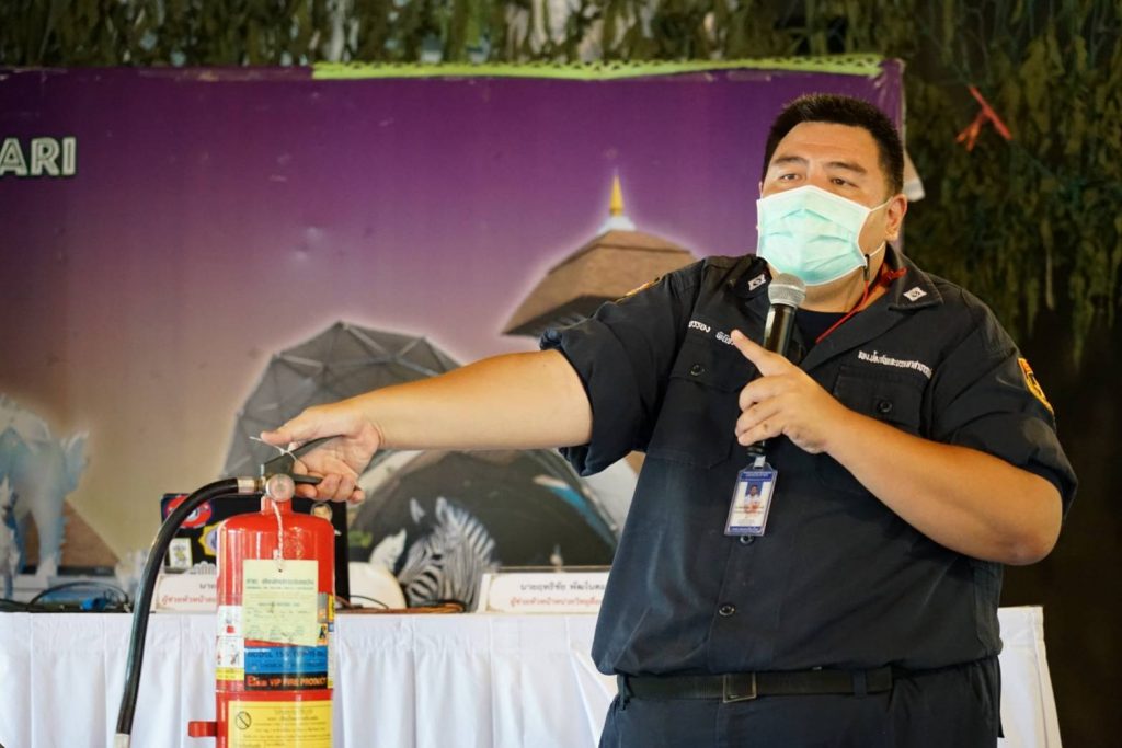 สำหรับ “การอบรมหลักสูตรการป้องกันและระงับอัคคีภัย” จัดขึ้นภายใต้โครงการพัฒนาบุคลากร ประจำปีงบประมาณ พ.ศ.2564 และได้รับความร่วมมือจาก สำนักงานป้องกันและบรรเทาสาธารณภัย จังหวัดเชียงใหม่ โดยมีวัตถุประสงค์เพื่อให้เจ้าหน้าที่ที่เข้ารับการอบรมมีความรู้ ความเข้าใจเกี่ยวกับการป้องกันและระงับอัคคีภัย มีทักษะในการใช้อุปกรณ์ดับเพลิง การเอาตัวรอดและช่วยเหลือนักท่องเที่ยวเมื่อเกิดเหตุไฟไหม้ พร้อมทั้งเข้าใจบทบาทหน้าที่ และสามารถอพยพหนีไฟเมื่อเกิดเหตุเพลิงไหม้ได้อย่างปลอดภัย ซึ่งจะเป็นการสร้างมาตรฐานด้านการให้บริการด้านความปลอดภัยของเชียงใหม่ไนท์ซาฟารีต่อไป