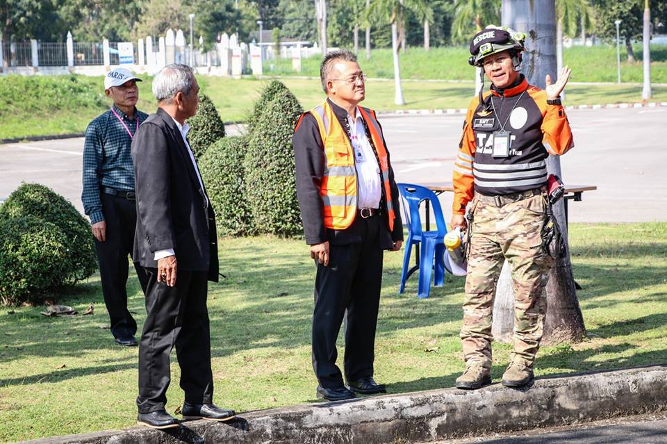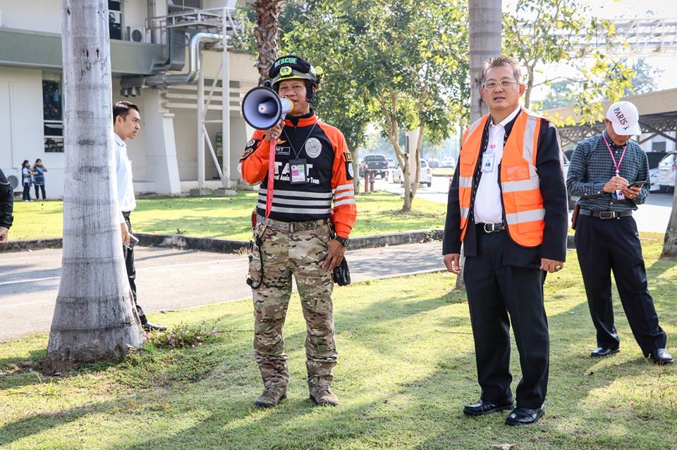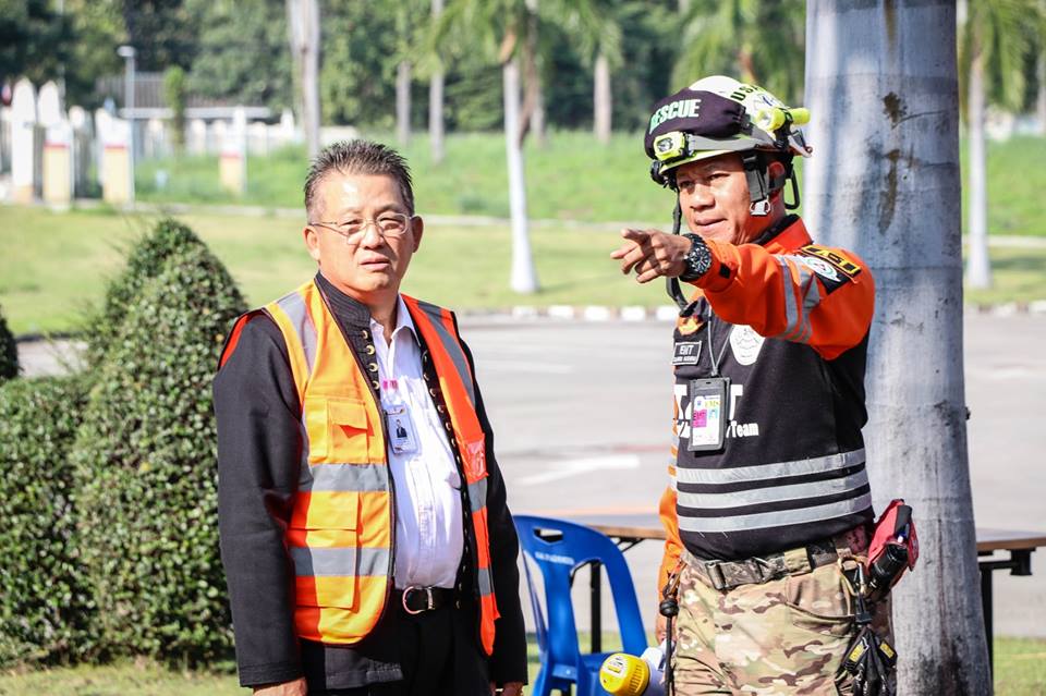 (ภาษาไทย) กิจกรรมการซ้อมแผนอัคคีภัยและแผ่นดินไหว ณ ศูนย์ประชุมและแสดงสินค้านานาชาติเฉลิมพระเกียรติ 7 รอบ พระชนมพรรษา